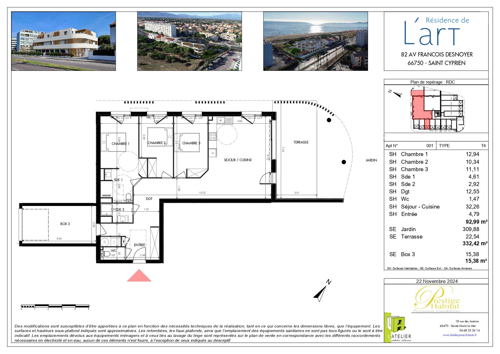 SAINT-CYPRIEN PLAGE : dans un lieu exceptionnel, en front de mer, l'Agence LAVILLE IMMO vous propose cet appartement de type 4 pièces accompagné de son jardin de +300m2 ainsi qu'une terrasse de 22m2. Cet appartement, situé au rez-de-chaussée d'une petite copropriété de 12 lots principaux, se compose d'une entrée, d'un séjour lumineux avec cuisine semi-équipée donnant sur la terrasse, 3 chambres dont une suite parentale chacune équipée de placards ainsi qu'un accés au jardin, deux salles d'eau modernes avec douche à l'italienne et mobilier design. Viens compléter ce bien un garage qui est accessible depuis l'appartement. Des équipements hauts de gamme (climatisation gainable), un parc photovoltaïque en toiture. Normes RE 2020 pour des logements éco-responsables, alliant économie d'énergie et confort thermique. Prix direct promoteur. Frais de notaire réduits.Bien soumis au statut de la copropriété. Nombre de lots : 12 principaux. Les informations sur les risques auxquels ce bien est exposé sont disponibles sur le site Géorisques : https://www.georisques.gouv.fr. Honoraires d'agence à la charge du vendeur.