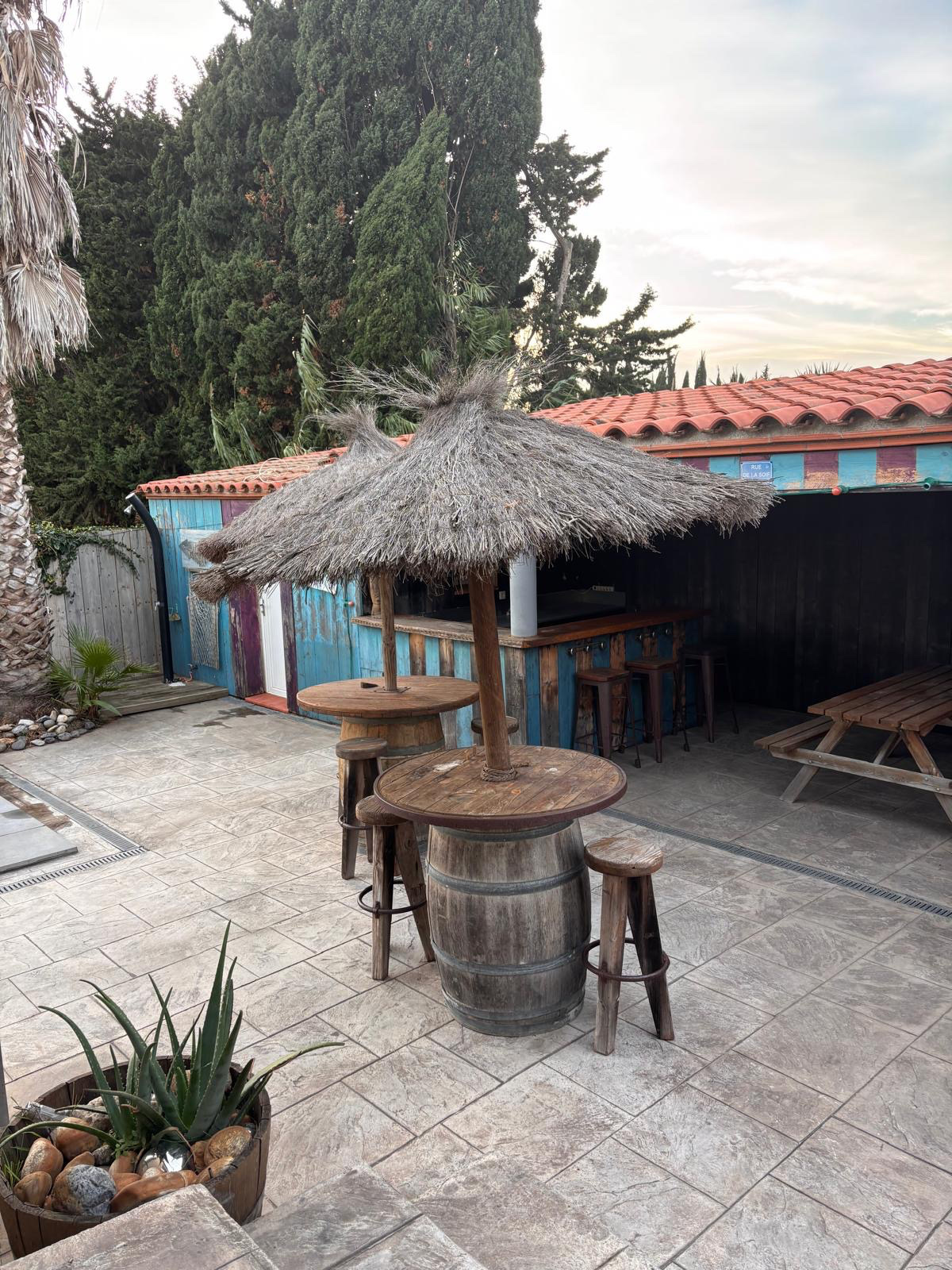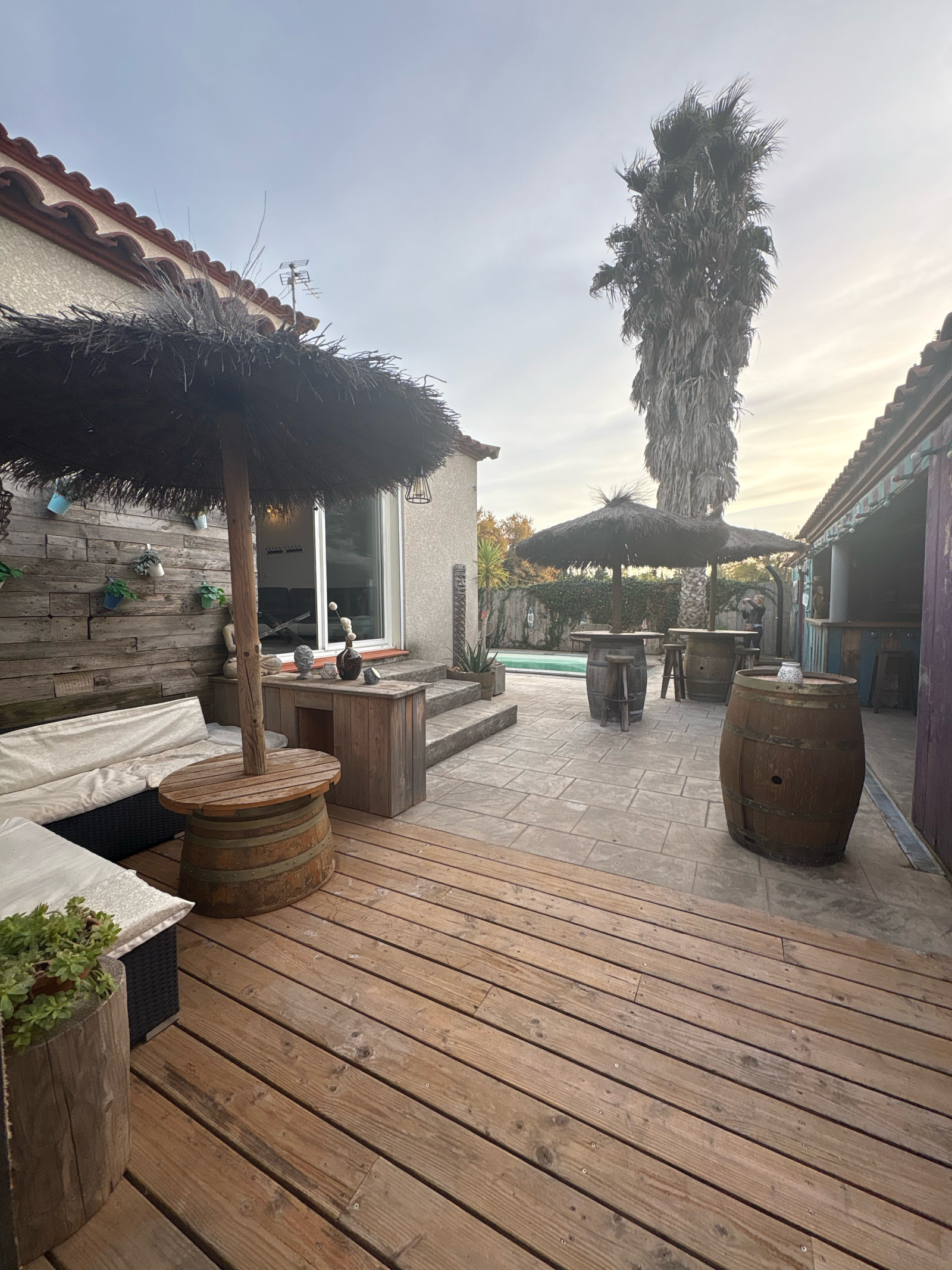 L’extérieur a été pensé pour profiter pleinement du climat méditerranéen. Vous y trouverez une cuisine d’été, plusieurs cabanons de rangement, un WC extérieur, une terrasse conviviale et une piscine au chlore idéale pour les beaux jours. Nombreuses possibilités de stationnement à l'intérieur de la parcelle.