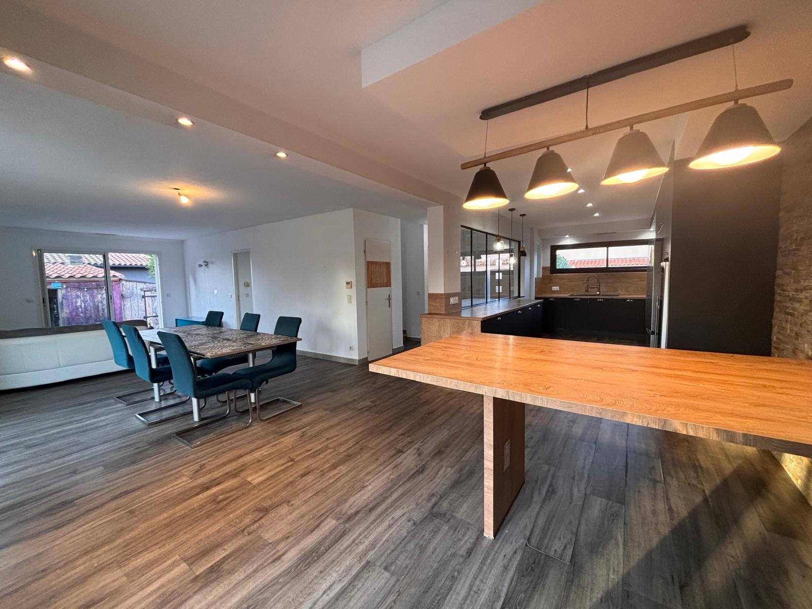 Au rez-de-chaussée, vous découvrirez un salon/séjour lumineux grâce à ses grandes baies vitrées donnant directement sur l’extérieur. La cuisine, récemment rénovée et entièrement équipée, bénéficie d’un îlot central fonctionnel, parfait pour les repas en famille. Une buanderie vient compléter l’espace de vie. Le rez-de-chaussée dispose également d’une suite parentale avec douche ainsi qu’un WC individuel.