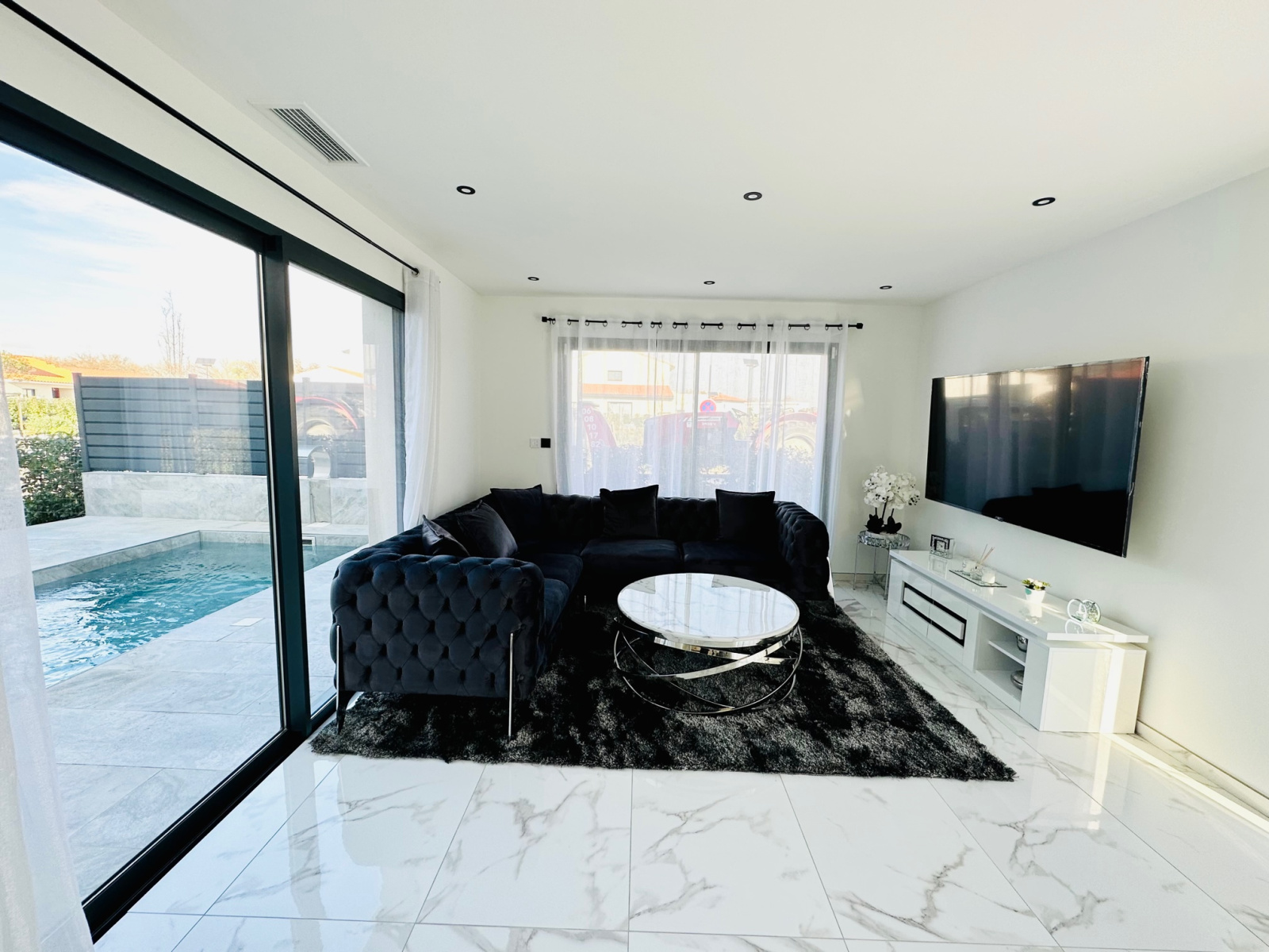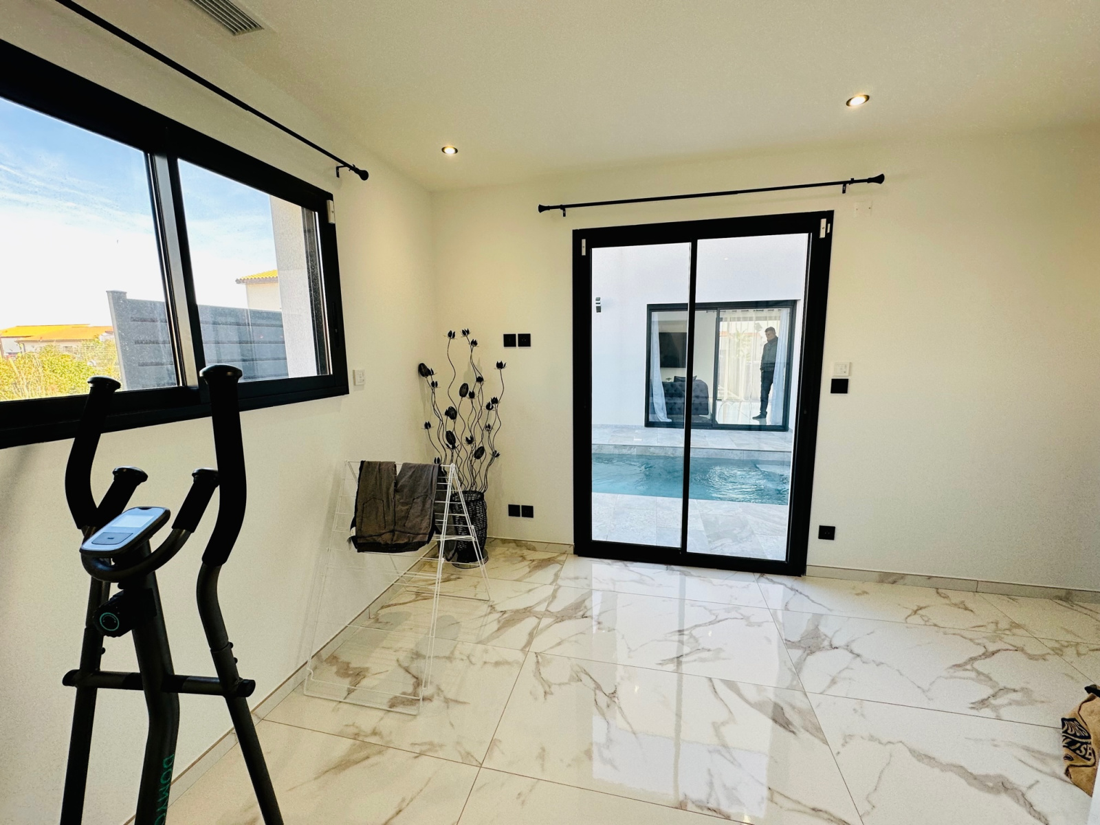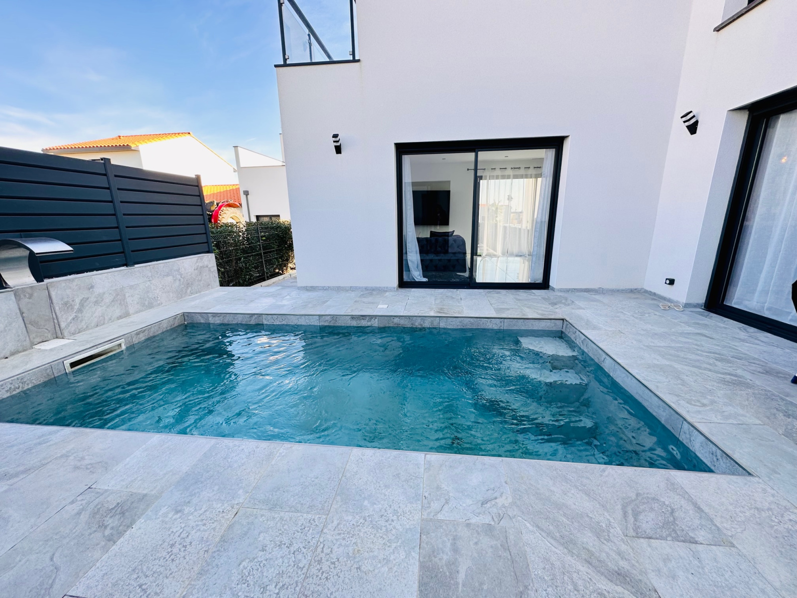 A visiter absolument pour coup de coeur!!! à Pollestres, pour cette Belle villa contemporaine neuve de 125m2, avec piscine, terrain en 3 faces, T5 (4 chambres dont une suite parentale en RDC), dans un lotissement résidentiel et calme, proche commodités et commerces et écoles, offre au RDC, une belle entrée, 1 grand salon séjour lumineux avec plusieurs grandes baies vitrées donnant vue sur la jolie piscine maçonnée de 6 x 2,5m avec cascade sans vis à vis, une belle cuisine neuve équipée avec un ilot central, une suite parentale avec douche à l'italienne et placards, un wc séparé, et à l'étage, un joli palier avec vue sur la piscine desservant 3 belles chambres avec grands placards dont 2 avec terrasses, une grande salle de bain, un wc séparé. Un garage carrelé et isolé complète le bien. Prestations de standing, grands carrelages, climatisation gainable, spots, baies en aluminium. 2 places privatives devant la villa pour se garer et un parking à proximité toujours disponible pour les invités. Il ne reste plus qu'à poser vos valises!. Bien disponible immédiatement. Proche des commodités et commerces, Pollestres est une ville active avec son centre commercial, A 15 minutes des plages de Canet ou Saint-Cyprien, 5 minutes de Perpignan...Pour plus d'informations ou une visite même le week-end!!!, contactez-nous au 0683746071 l'Agence LAVILLE IMMO, Mme LE GUEVEL, EI, RSAC N°814377776. Ville du greffe : PERPIGNAN.