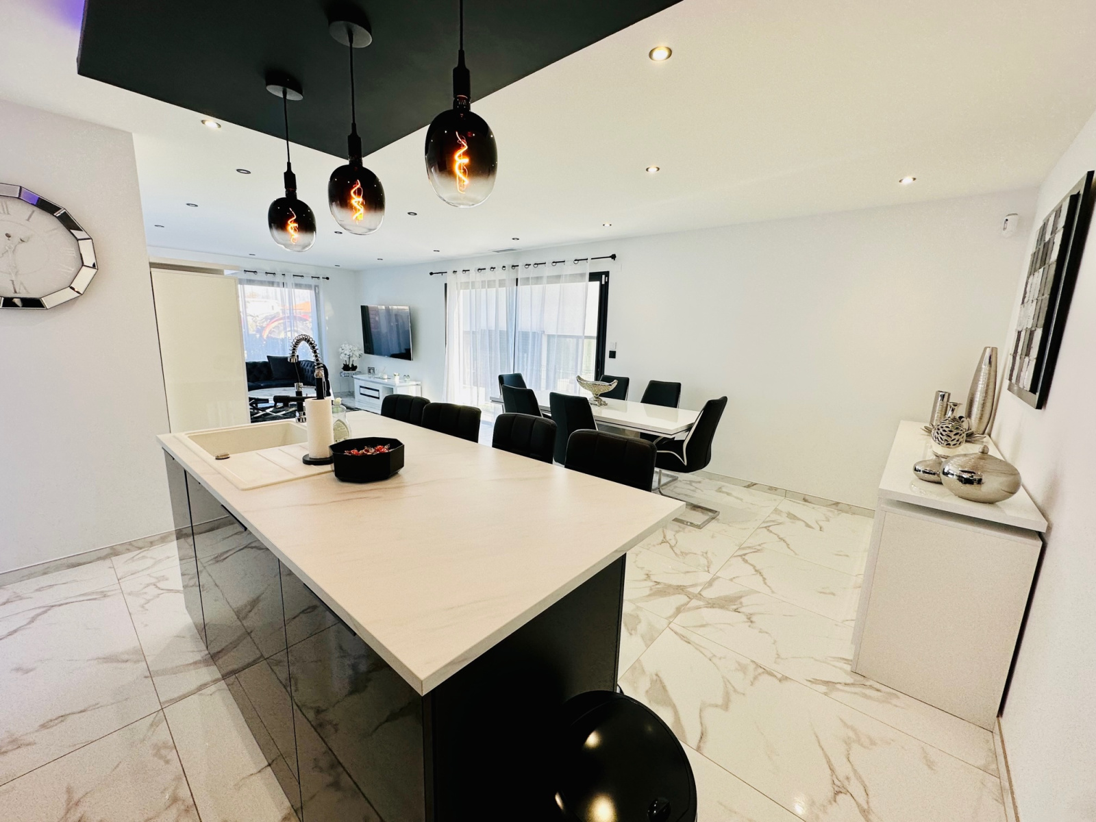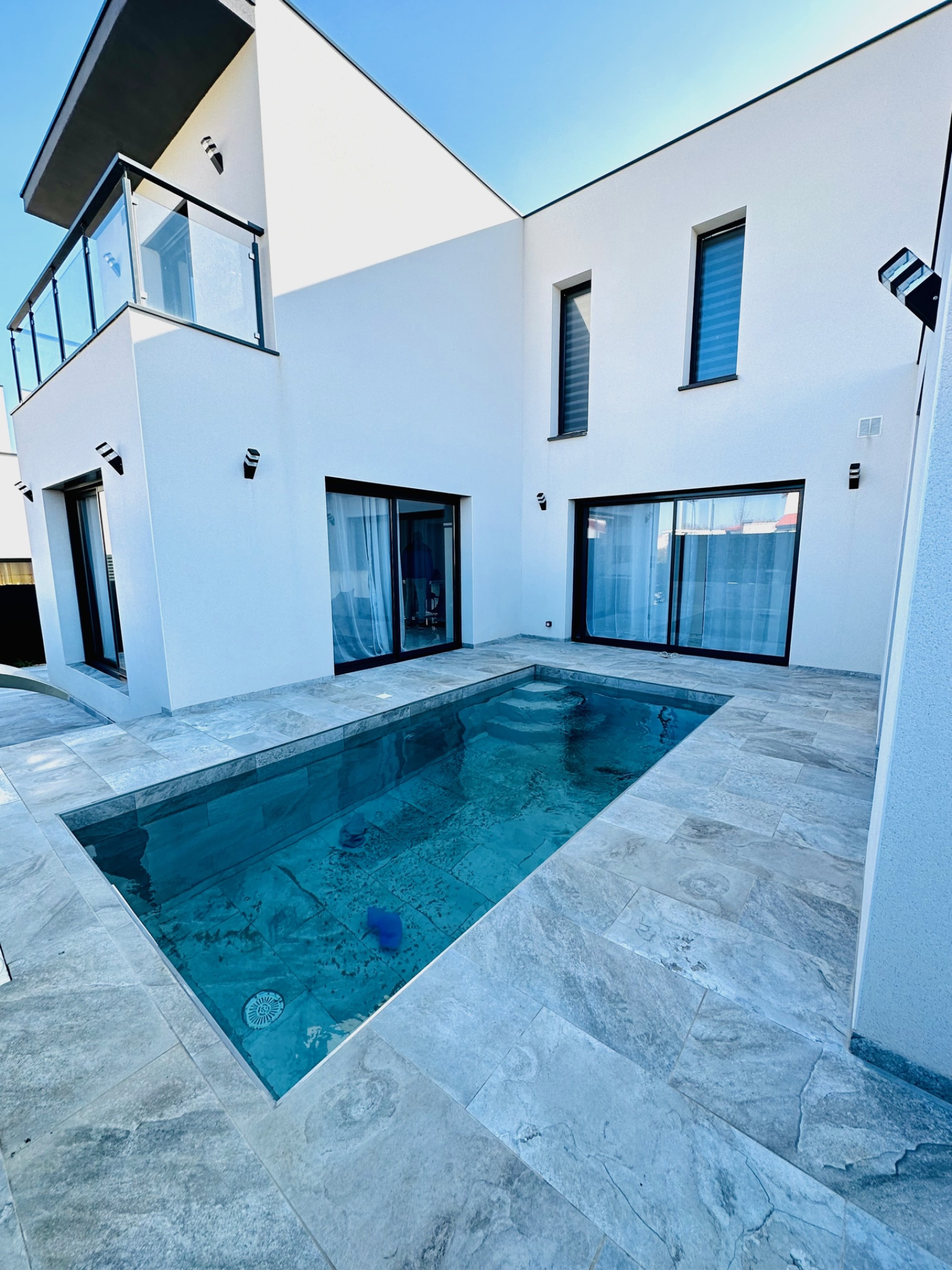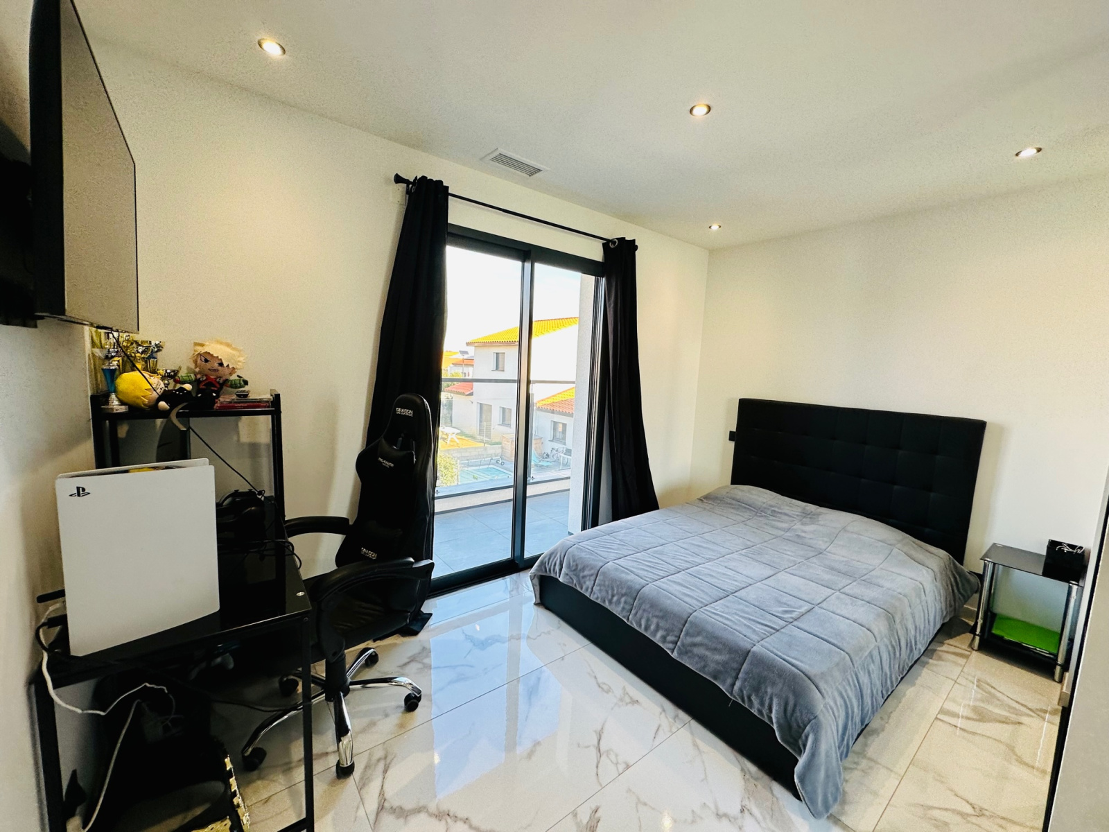 A visiter absolument pour coup de coeur!!! à Pollestres, pour cette Belle villa contemporaine neuve de 125m2, avec piscine, terrain en 3 faces, T5 (4 chambres dont une suite parentale en RDC), dans un lotissement résidentiel et calme, proche commodités et commerces et écoles, offre au RDC, une belle entrée, 1 grand salon séjour lumineux avec plusieurs grandes baies vitrées donnant vue sur la jolie piscine maçonnée de 6 x 2,5m avec cascade sans vis à vis, une belle cuisine neuve équipée avec un ilot central, une suite parentale avec douche à l'italienne et placards, un wc séparé, et à l'étage, un joli palier avec vue sur la piscine desservant 3 belles chambres avec grands placards dont 2 avec terrasses, une grande salle de bain, un wc séparé. Un garage carrelé et isolé complète le bien. Prestations de standing, grands carrelages, climatisation gainable, spots, baies en aluminium. 2 places privatives devant la villa pour se garer et un parking à proximité toujours disponible pour les invités. Il ne reste plus qu'à poser vos valises!. Bien disponible immédiatement. Proche des commodités et commerces, Pollestres est une ville active avec son centre commercial, A 15 minutes des plages de Canet ou Saint-Cyprien, 5 minutes de Perpignan...Pour plus d'informations ou une visite même le week-end!!!, contactez-nous au 0683746071 l'Agence LAVILLE IMMO, Mme LE GUEVEL, EI, RSAC N°814377776. Ville du greffe : PERPIGNAN.