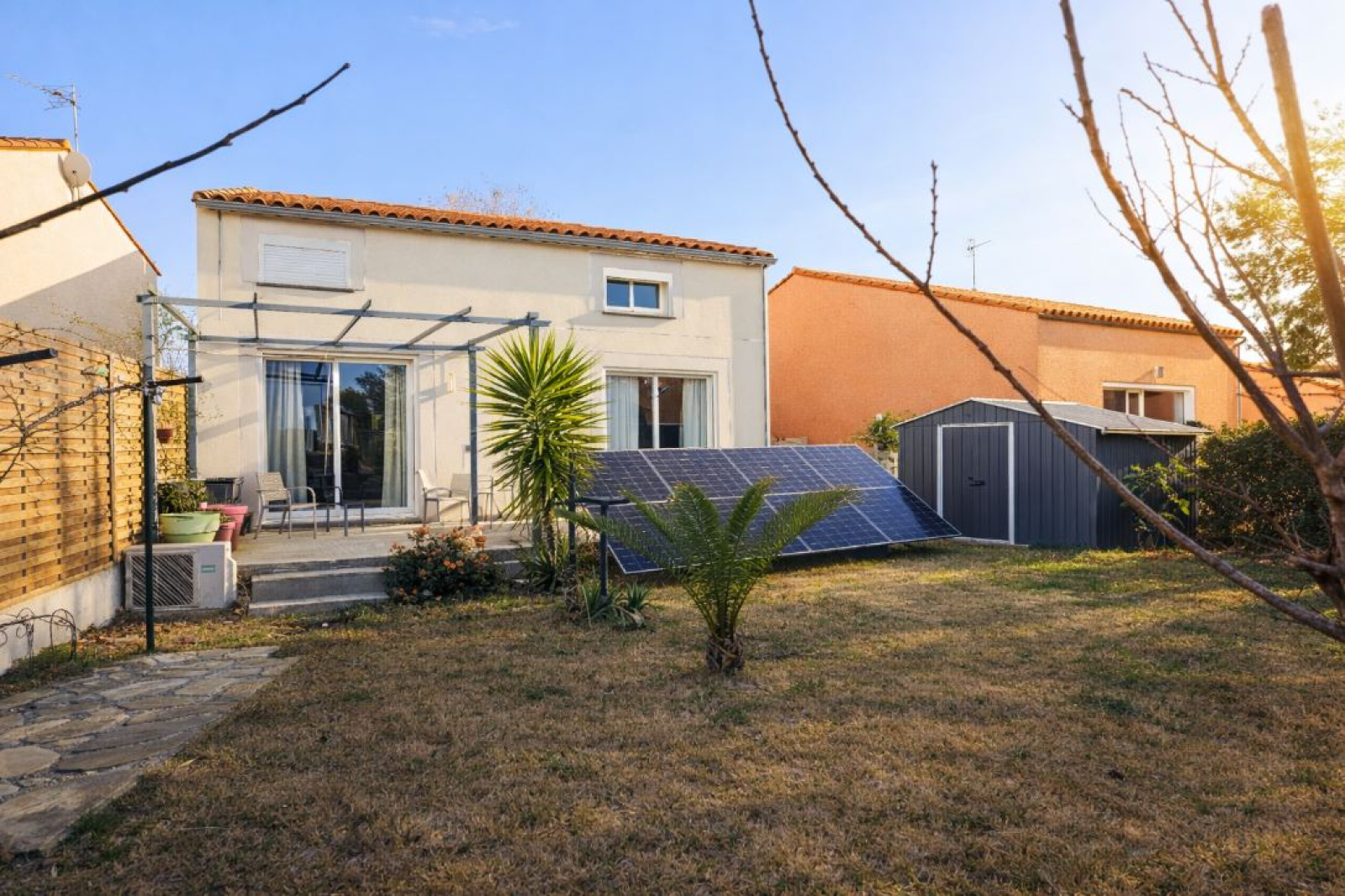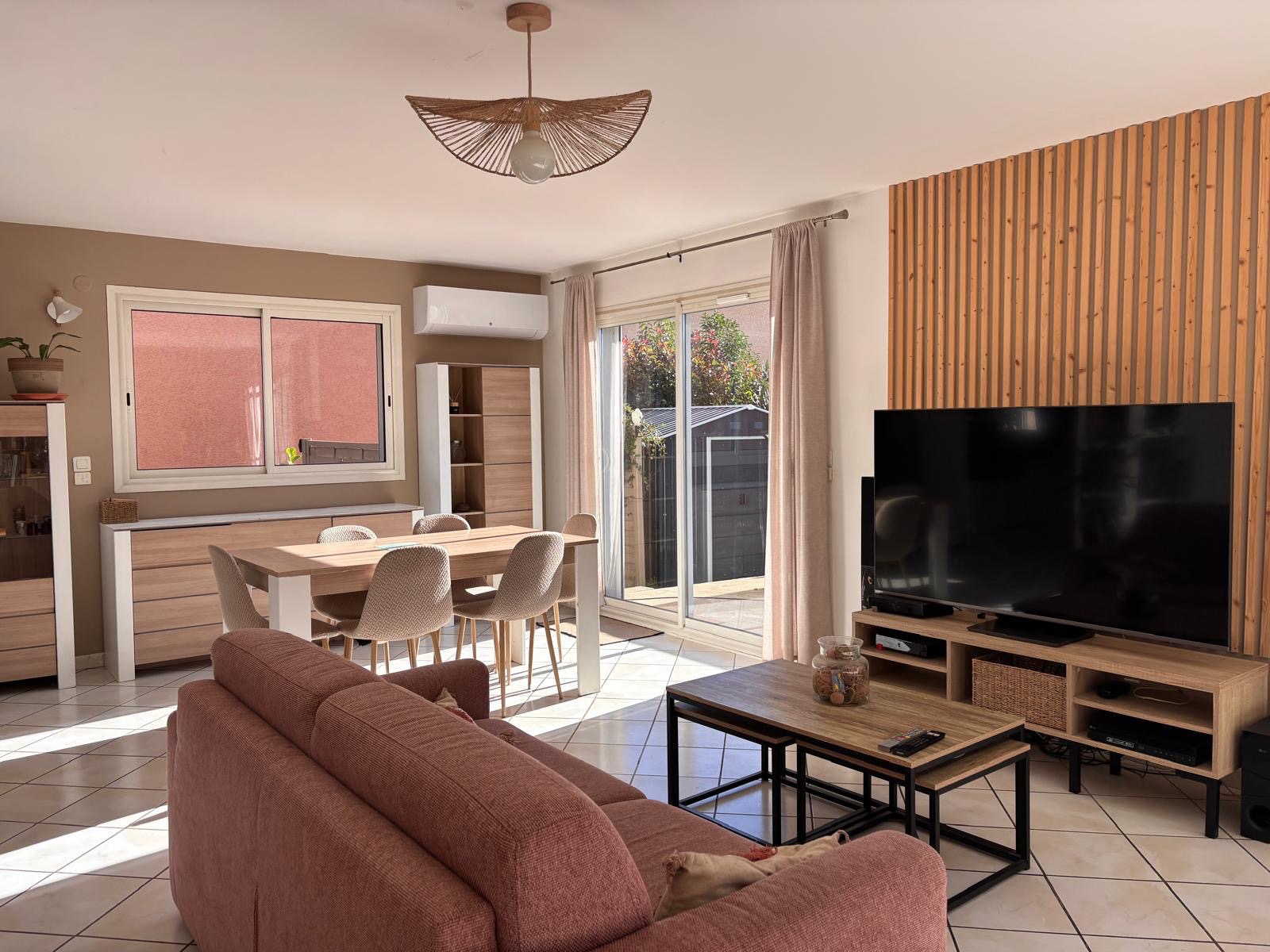 EXCLUSIVITE !!! ELNE : A seulement 10 minutes de Perpignan et 5 minutes des plages de Saint-Cyprien, L’Agence LAVILLE IMMO vous propose cette agréable et jolie villa 3 faces en R+1, idéalement située dans un environnement paisible et bénéficiant d’une exposition plein sud. Au rez de chaussée, découvrez une pièce de vie lumineuse, grâce à ses grandes baies vitrées ouvrant sur un jardin intime sans vis-à-vis. Le salon/séjour est équipé d’une climatisation réversible, garantissant confort toute l’année. La cuisine, fonctionnelle et entièrement équipée, complète l’espace de vie.Côté nuit, vous trouverez, une chambre spacieuse en rez-de-chaussée équipée de la climatisation gainable. Une salle d’eau avec fenêtre et toilette. A l'étage, idéal pour le coin enfants, 3 chambres avec placards, climatisation gainable, une salle de bains équipée d’un velux, d’un sèche-serviette et d’un toilette. L'extérieur se compose d'un agréable jardin sans vis-à-vis, deux cabanons de rangement, un forage, une terrasse pour vos moments de détente et des panneaux solaires pour un meilleur confort énergétique. Un bien complet, lumineux et idéalement situé, parfait pour une famille recherchant tranquillité et prestations modernes.Proche des écoles maternelles, primaires et collège. Honoraires à la charge du vendeur. Informations sur les risques disponibles sur : www.georisques.gouv.fr. Ne tardez pas à nous contacter pour une visite sur site ! Coup de coeur assuré !!!